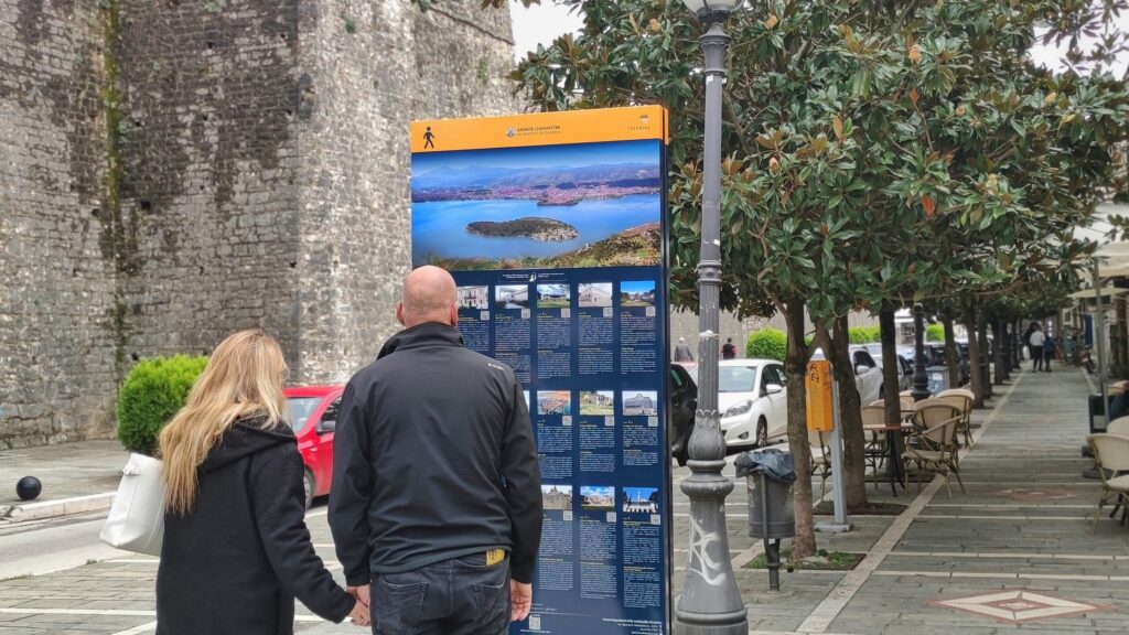 This system includes a detailed map of the area, providing time and distance information to the most important attractions. It also offers insights into key monuments, museums, and sights in the city of Ioannina.